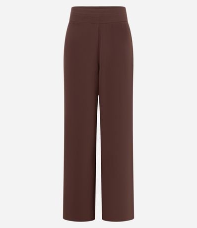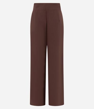 Calça feminina alfaiatada no modelo pantalona com cós liso e pregas.
