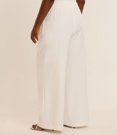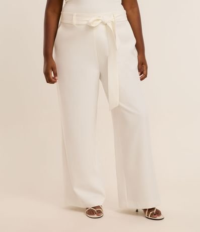 Ref: Calça feminina Curve & Plus Size no modelo pantalona com corte alfaiatado, peça contém cós com passantes e elástico, cinto de amarração e bolsos.