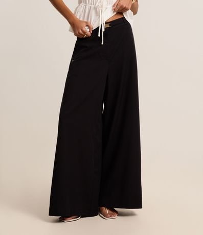Ref: Calça super ampla alfaiatada e sem estampa. A peça tem elástico nas costas, o que permite melhor ajuste e conforto. Para charme extra, acompanha cinto no mesmo tecido e fivela metalizada.