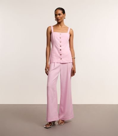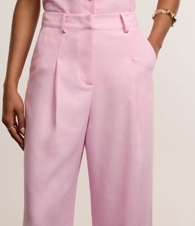 Ref: Calça pantalona de cintura alta, confeccionada em tecido plano com 12% de linho, com passantes na cintura, fechamento tradicional, pregas e bolsos falsos atrás. Este produto possui viscose certificada em sua composição, sendo ambientalmente mais responsável.