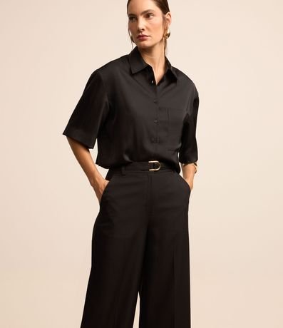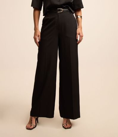 Ref: Calça pantalona alfaiatada com passantes e cinto no cós, fivela metalizada no cinto além de pregas logo abaixo.