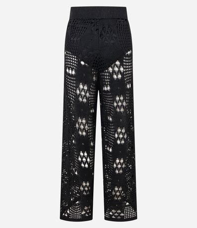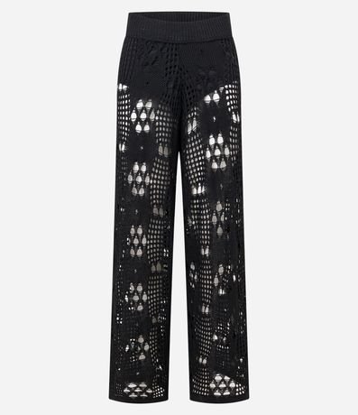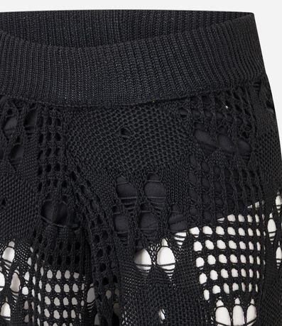 Ref: Calça feminina no modelo pantalona, com sobreposição, forro de short liso com calça longa de tricô com textura, furinhos e cintura alta.