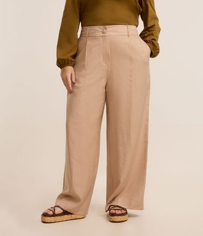 Ref: Calça feminina Curve & Plus Size confeccionada em alfaiataria de viscose mais sustentável com boas práticas ambientais, peça no modelo pantalona com cós fixo, passantes, fechamento tradicional com botão forrado e bolsos.