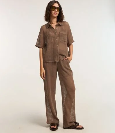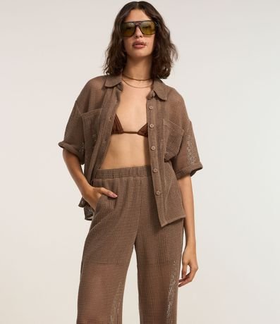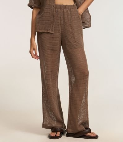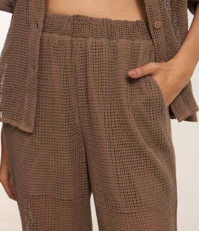 Ref: Calça pantalona, confeccionada em algodão bci mais sustentável, textura de tela, bolsos e cós elástico.