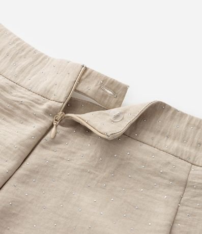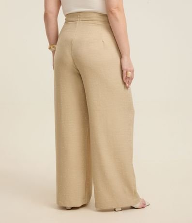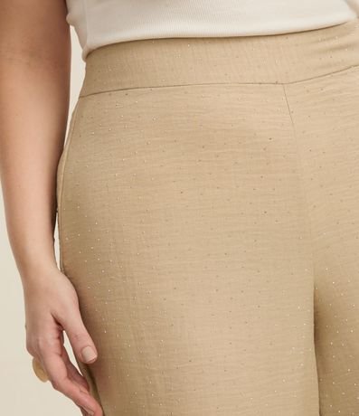 Calça feminina Curve & Plus Size confeccionada em crepe com boas práticas ambientais, peça no modelo pantalona com fechamento vista oculta e detalhe de brilhos.