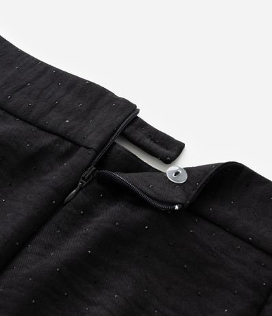 Calça feminina Curve & Plus Size confeccionada em crepe com boas práticas ambientais, peça no modelo pantalona com fechamento vista oculta e detalhe de brilhos.