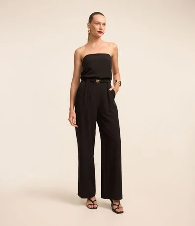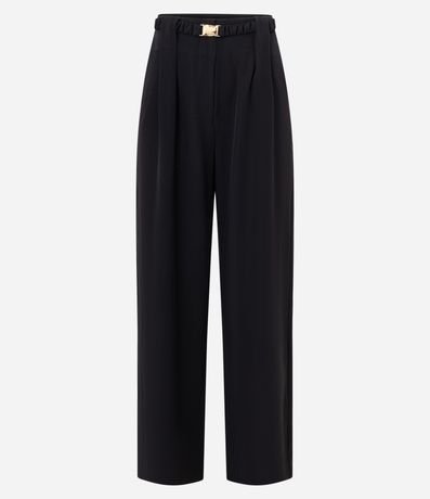 Ref: Calça pantalona confeccionada em crepe com passantes e cinto de elástico com fecho metalizado e pregas.