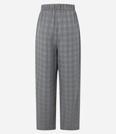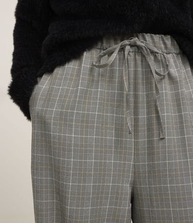 Calça Pantalona em Crepe com Estampa Xadrez e Cós de Elástico