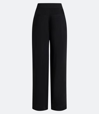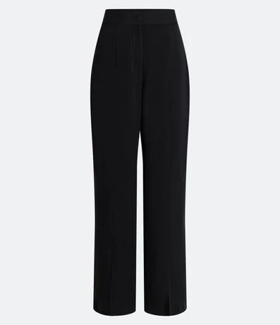 Ref: Calça pantalona em crepe, com fechamento no cós, fendas frontais e superfície sem estampa.