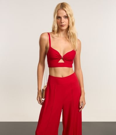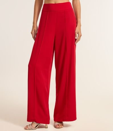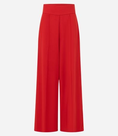 Calça Pantalona em Crepe com Friso Frontal