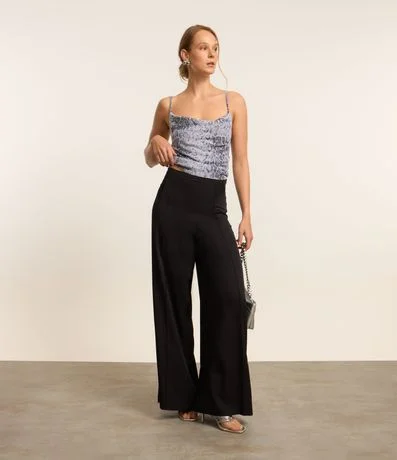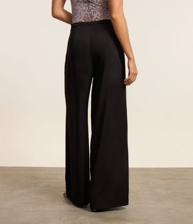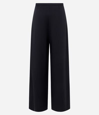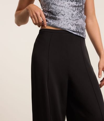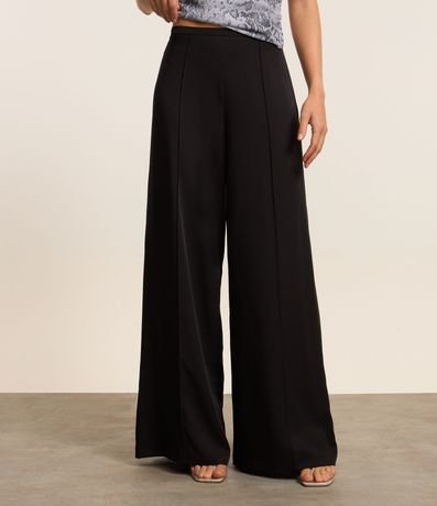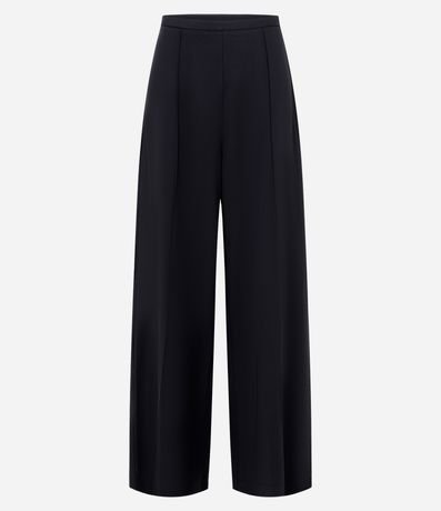 Calça pantalona com cós estreito, friso frontal e confeccionada em crepe.