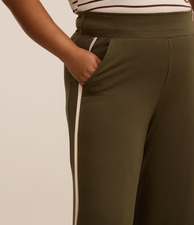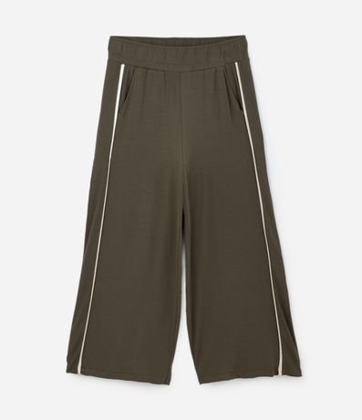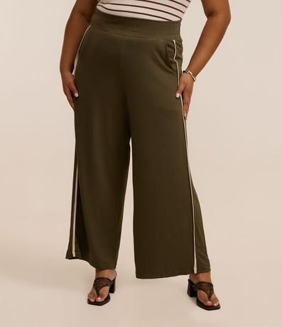 Ref: Calça pantalona feminina, confeccionada em crepe, com viscose certificada em sua composição. A peça possui também listra na lateral e amarração.
