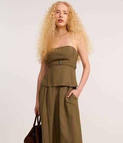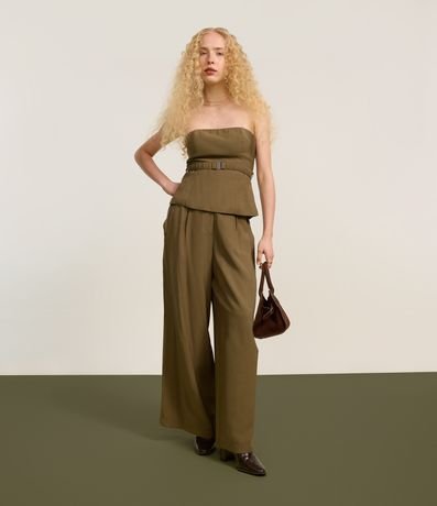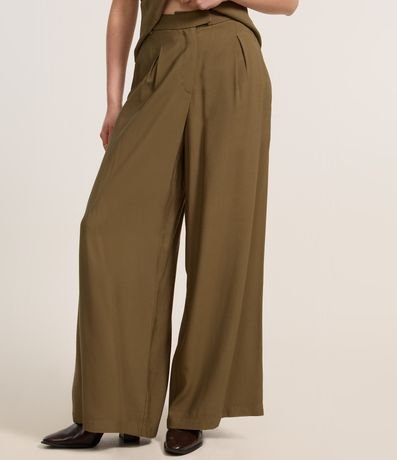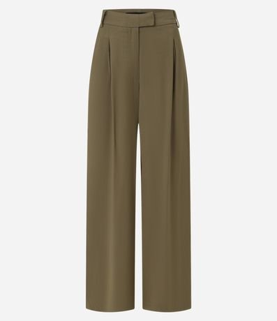 Ref: Calça pantalona com cintura alta, confeccionada em crepe com viscose certificada mais sustentável, pregas frontais e sem estampa.