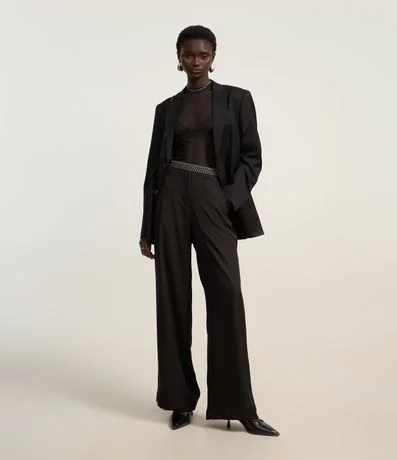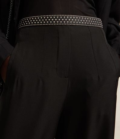 Calça pantalona com pences pespontados, recorte em vzinho no cós e confeccionada em crepe.