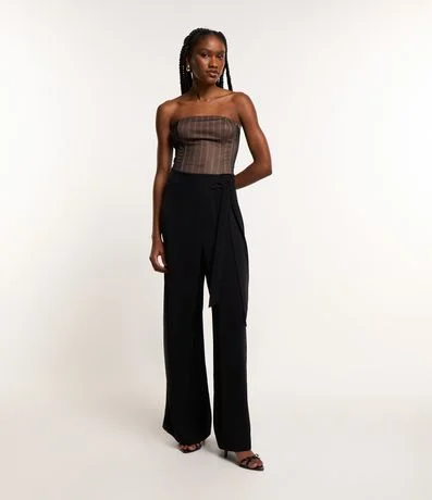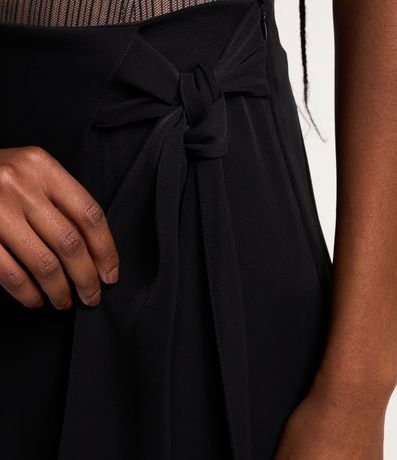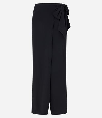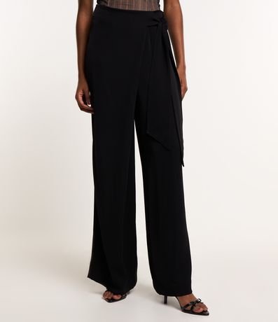 Calça Pantalona em Crepe com Sobreposição e Amarração