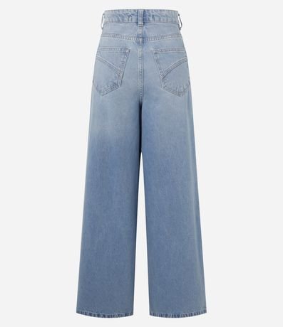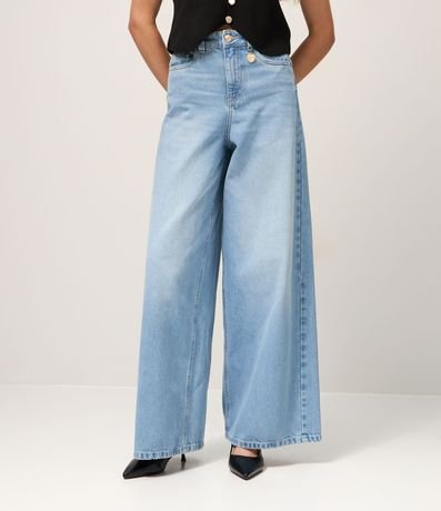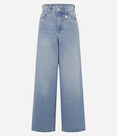 Calça Pantalona em Jeans com Cintura Alta e Detalhe Charm