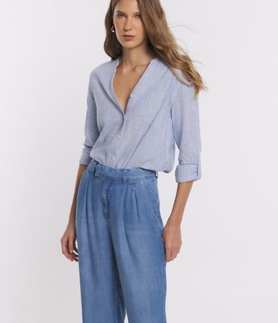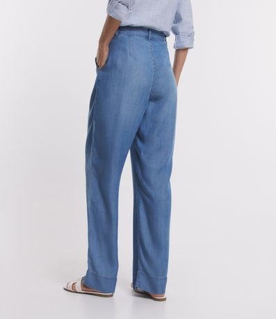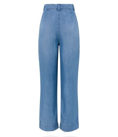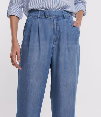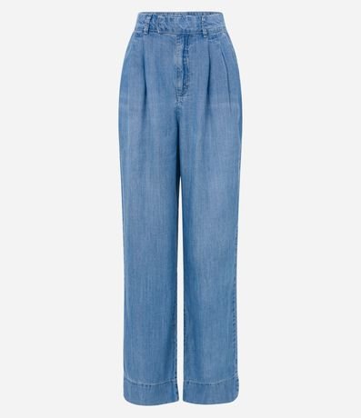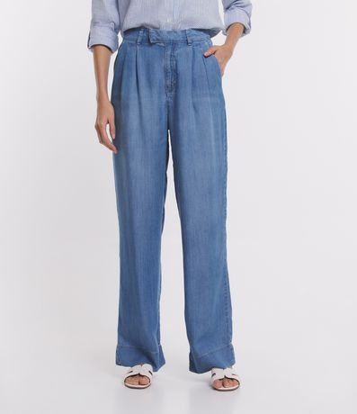 Calça Pantalona em Jeans com Cós Diferenciado e Pregas