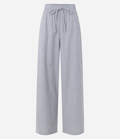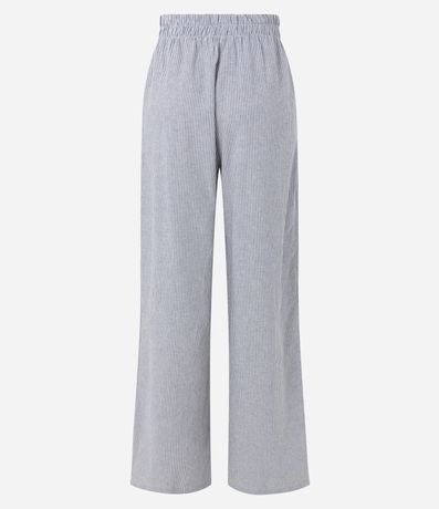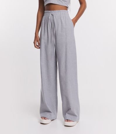 Ref: Calça pantalona, com cós elástico e listras em fio tinto.