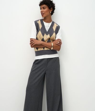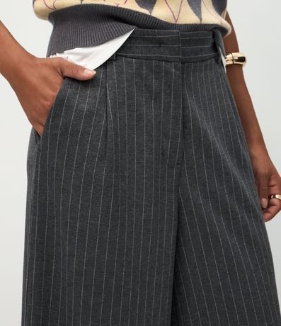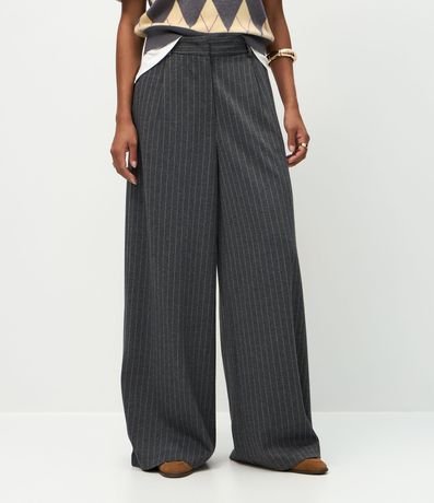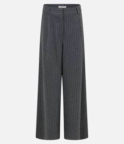 Ref: Calça feminina confeccionada em modal, de modelo pantalona, com passantes no cós e padronagem risca de giz. Possui fechamento frontal tradicional.