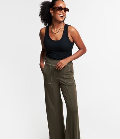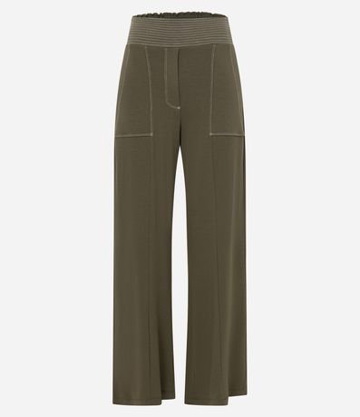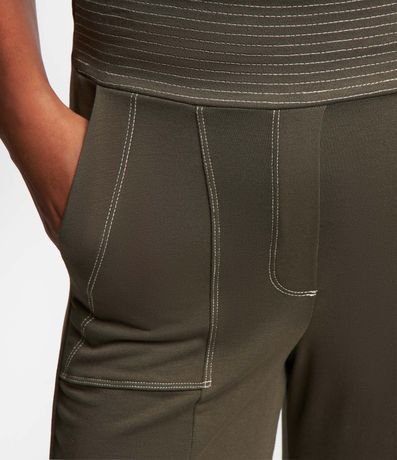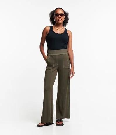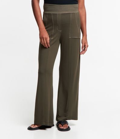 Ref: Calça pantalona feminina, confeccionada em moletinho, com cós elástico, bolsos e pespontos contrastantes.