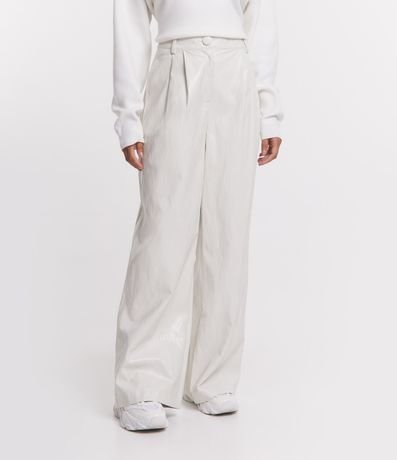 Calça Pantalona em PU com Pregas
