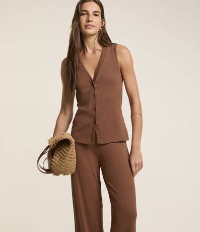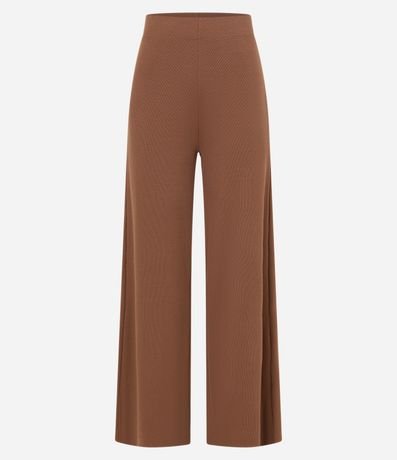 Ref: Calça pantalona feminina, confeccionada em ribana, com cós elástico e textura canelada.