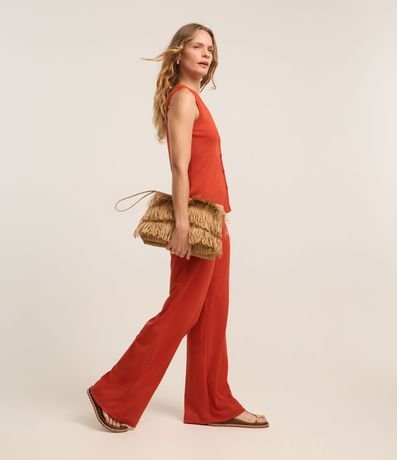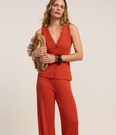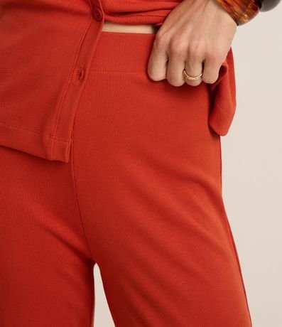 Ref: Calça pantalona feminina, confeccionada em ribana, com cós elástico e textura canelada.