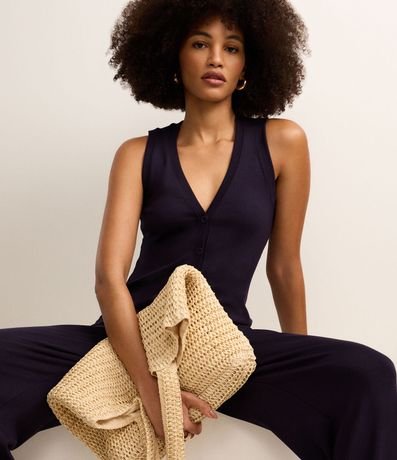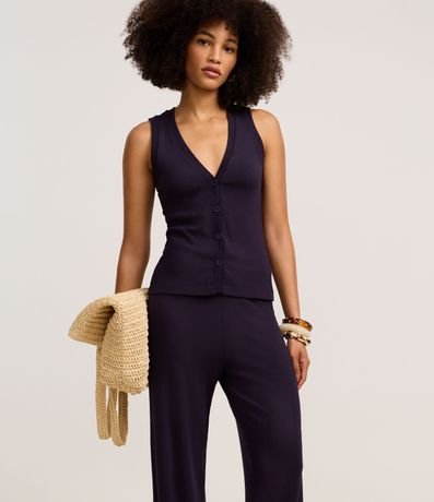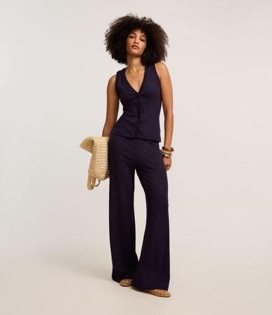 Ref: Calça pantalona feminina, confeccionada em ribana, com cós elástico e textura canelada.