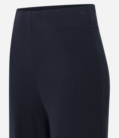 Calça pantalona feminina, confeccionada em ribana, com cós elástico e textura canelada.