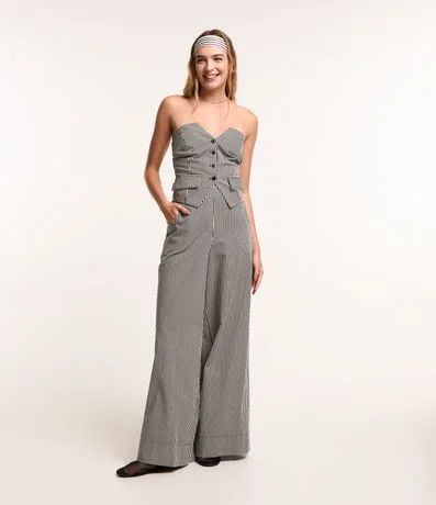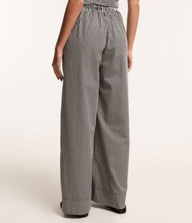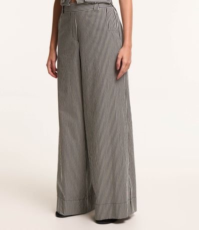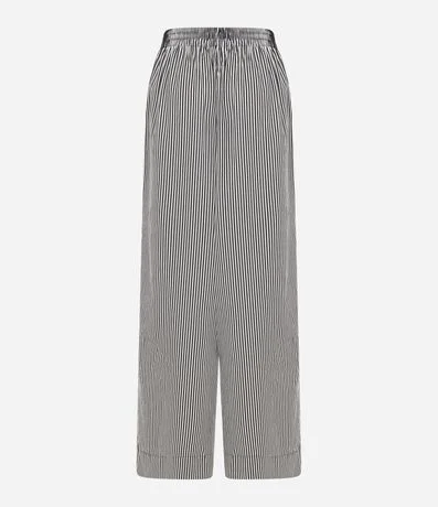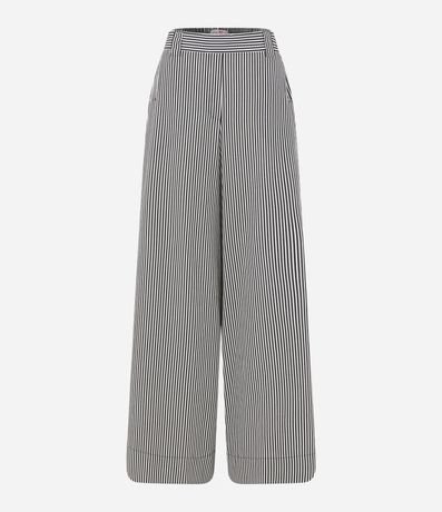 Calça Pantalona em Tricoline com Listras em Fio Tinto