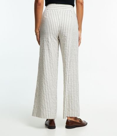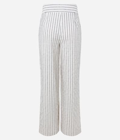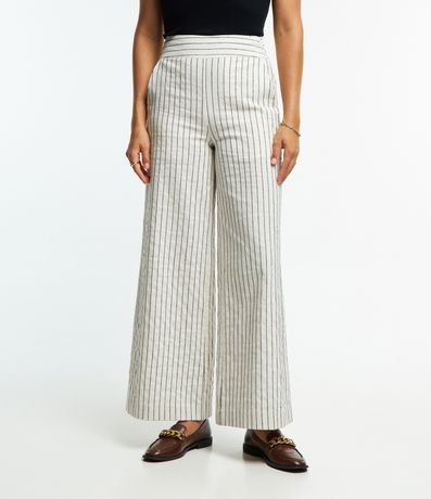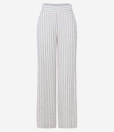 Calça Pantalona em Tricoline com Zíper na Lateral do Cós e Estampa Listrada