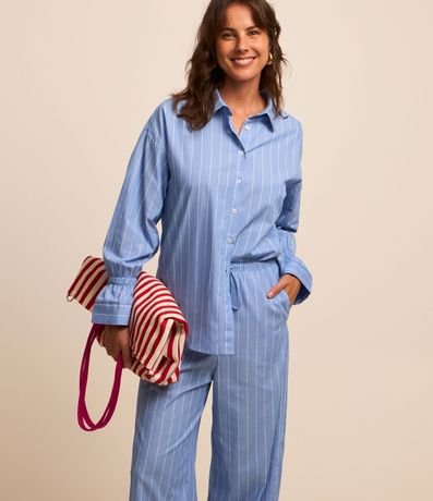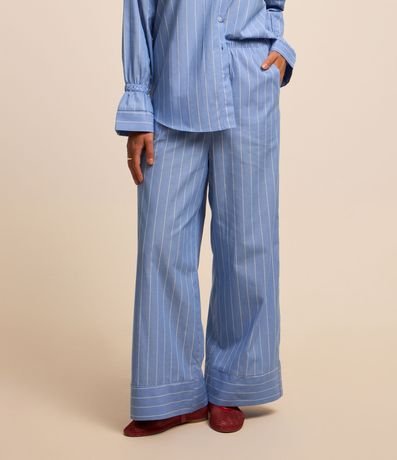 Ref: Calça pantalona confeccionada em tricoline de cintura ala com elástico e amarração na cintura além de listras verticais.