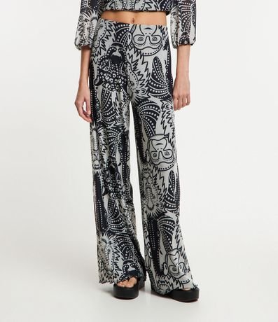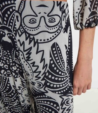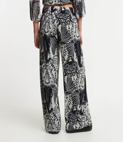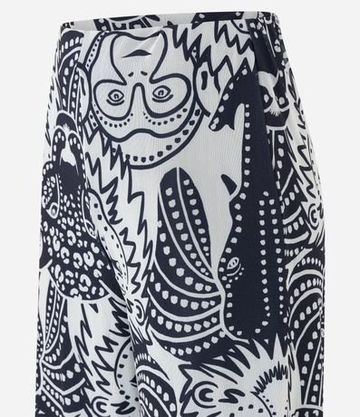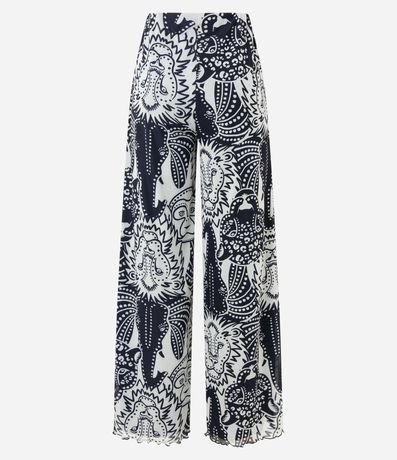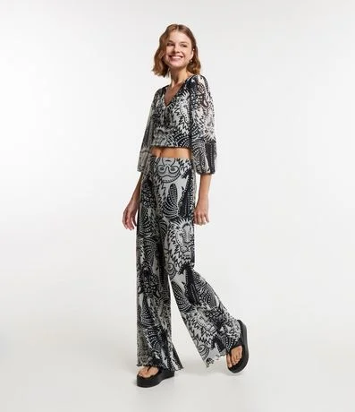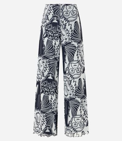 Ref: Calça pantalona feminina em tule, com cintura elástica, barra ondulada e estampa diferenciada de animais.
