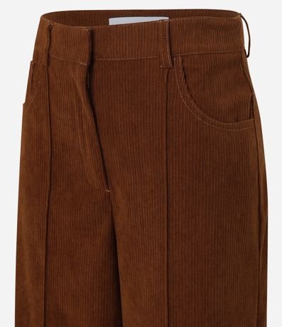 Ref: Calça pantalona feminina, confeccionada em veludo cotelê, com bolsos e frisos frontais.