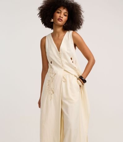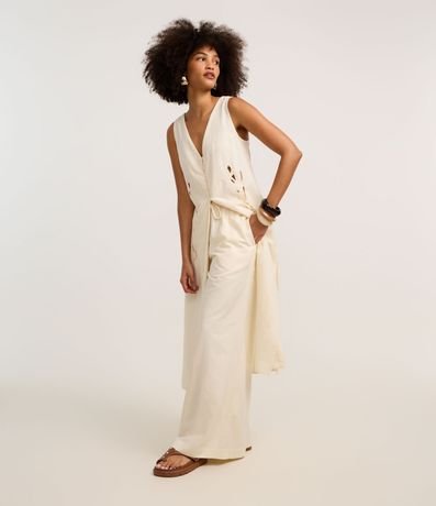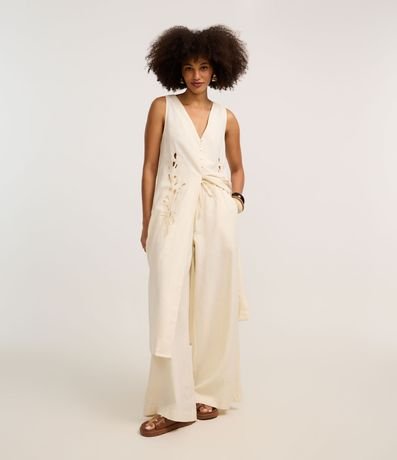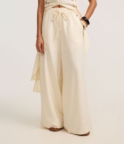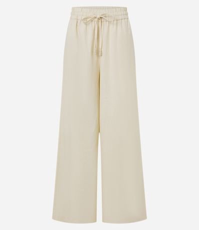 Ref: Calça pantalona, confeccionada em viscolinho, com elástico e amarração no cós. Este produto possui viscose certificada em sua composição, sendo ambientalmente mais responsável.