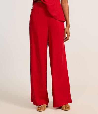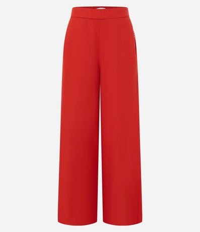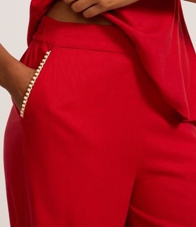 Ref: Calça pantalona, confeccionada em viscolinho, com elástico detrás do cós e bolsos na frente. Os bolsos da calça possuem bolinhas aplicadas.
