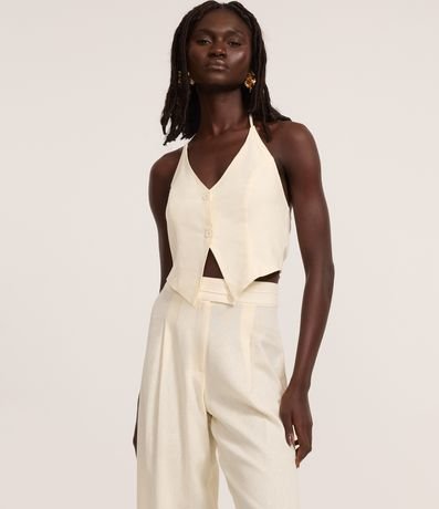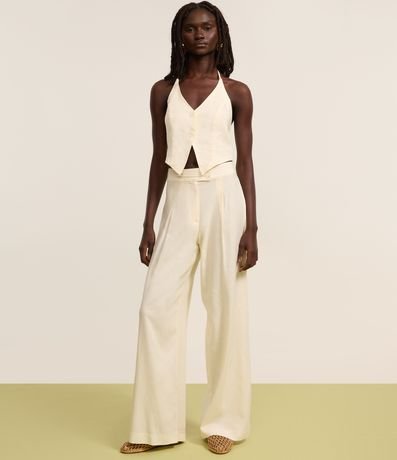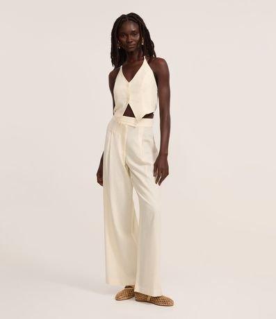Ref: Calça de viscolinho com cintura alta e cós transpassado.