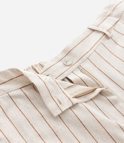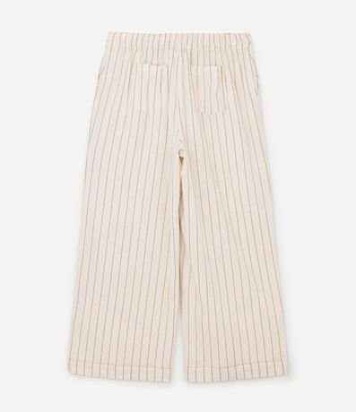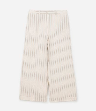 Ref: Calça ampla em viscolinho composto majoritariamente por viscose certificada e linha. A calça tem elástico nas costas, botão madrepérola, bolsos laterais, bolsos chapados nas costas e estampa listrada vertical.