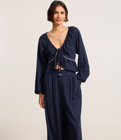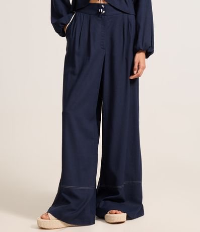 Ref: Calça pantalona confeccionada em viscose certificada mais sustentável e com barra larga.