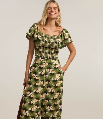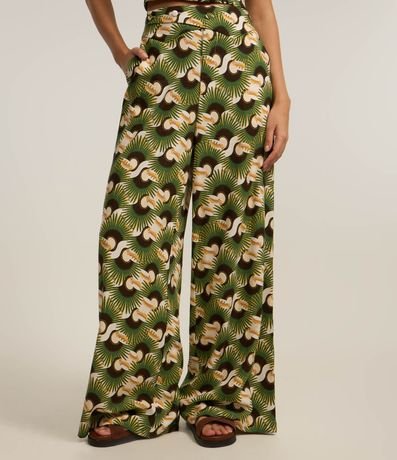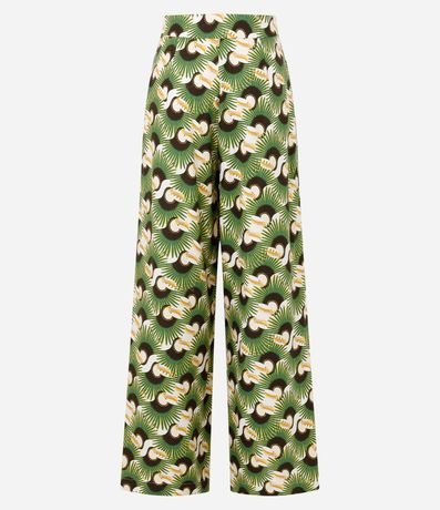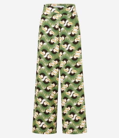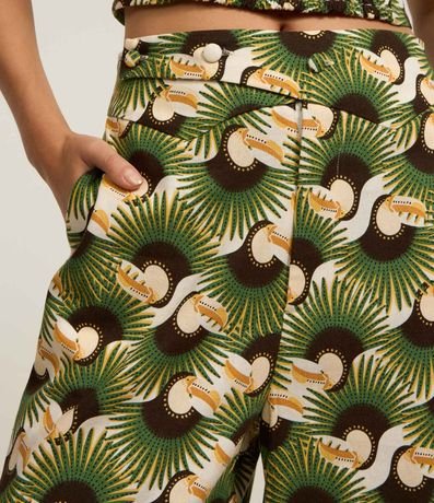 Calça Pantalona em Viscose e Linho com Estampa Tucanos