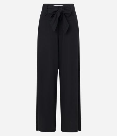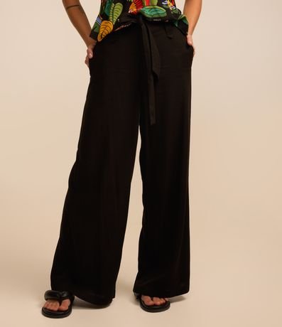 Calça pantalona com passantes no cós, laço frontal e confeccionada em viscose e linho.