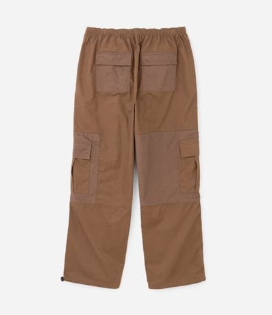 Calça Parachute em Sarja com Recortes e Bolsos Laterais