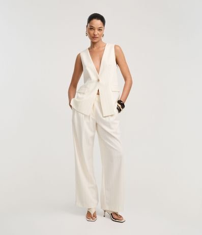 Ref: Calça reta alfaiatada, em viscose, com cintura alta, fechamento tradcional e listars. Este produto possui viscose certificada em sua composição, sendo ambientalmente mais responsável.