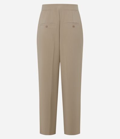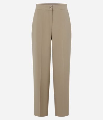 Calça reta feminina, de corte alfaiatado, com fechamento frontal tradicional, bolsos e frisos.