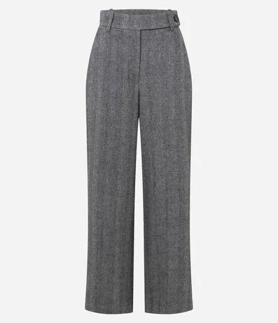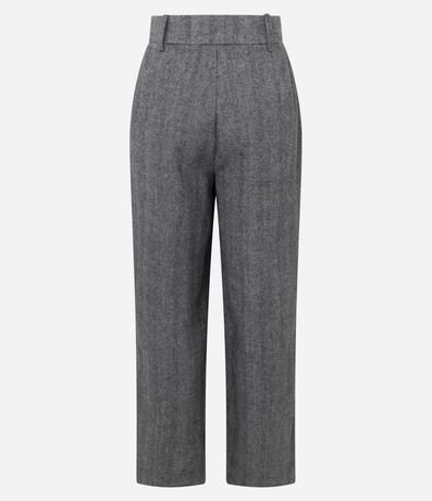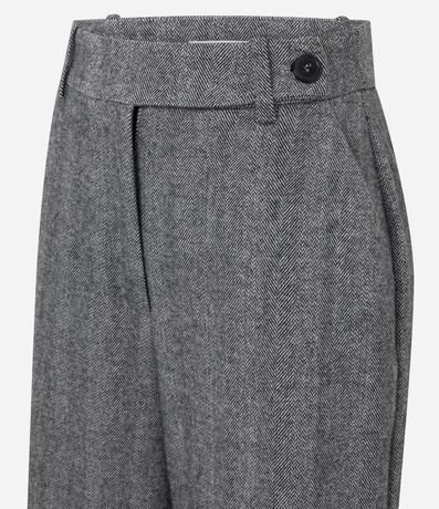 Calça alfaiatada feminina confeccionada em poliéster. Possui modelagem reta com cós transpassado e padronagem espinha de peixe.