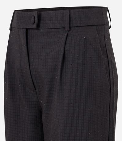 Calça Reta Alfaiatada com Estampa Xadrez e Detalhe de Brilho