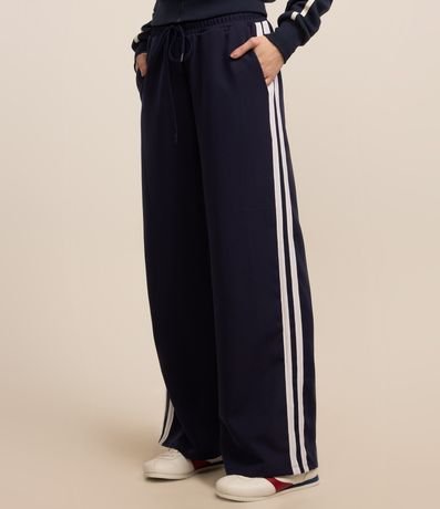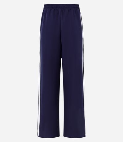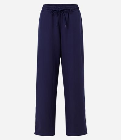 Ref: Calça reta com corte alfaiatado, confeccionada em poliéster, com cós elástico e cordão para ajuste, Possui frisos contrastantes na lateral.