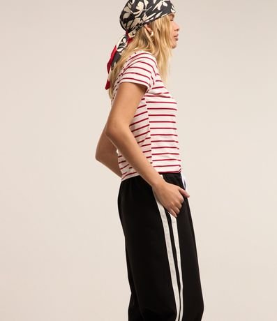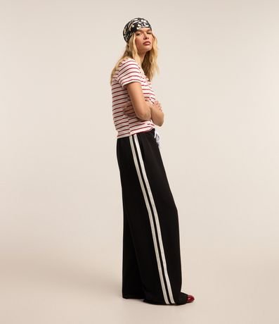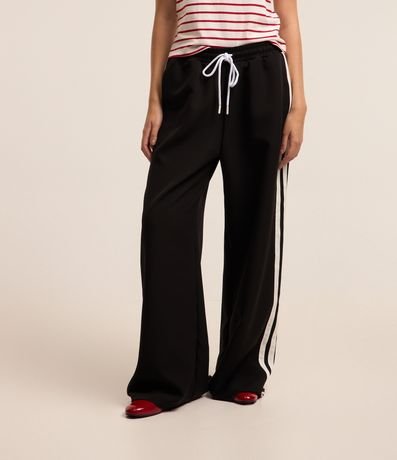 Ref: Calça reta com corte alfaiatado, confeccionada em poliéster, com cós elástico e cordão para ajuste, Possui frisos contrastantes na lateral.