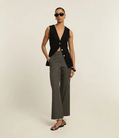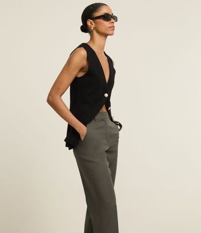 Calça Reta Alfaiatada com Ganchinho no Cós