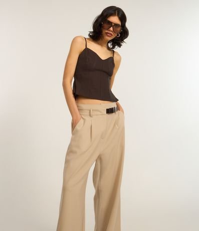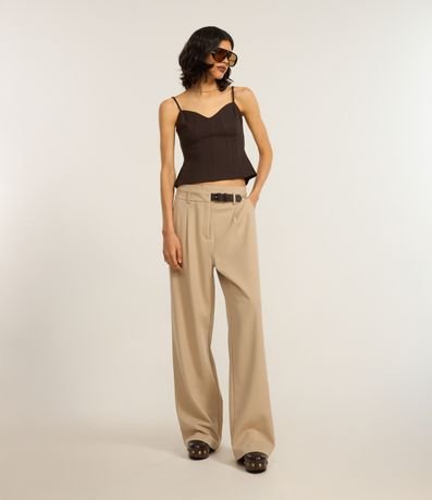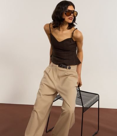 Calça Reta Alfaiatada com Meio Cinto Embutido